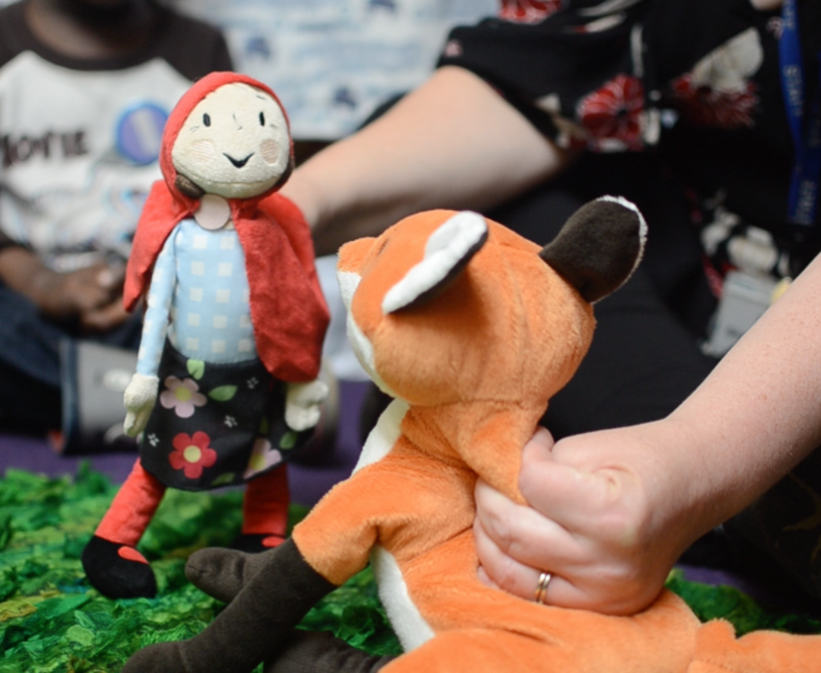 In a Tales Toolkit session, children experience all the narrative components, ‘who, where, when and what happened next,’ through play and a storytelling structure.